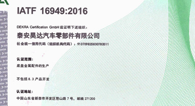 泰安昊達汽車零部件有限公司位于新泰市經濟開發(fā)區嶅山路7號,公司成立于2011年,是一家生產中、重型卡車底盤鑄鍛件、焊接件、發(fā)動機配件的專業廠家,廠區占地面積101畝,2018年建設年產300萬件汽車零部件項目,項目總投資3.16億元,總建筑面積3.6萬平方米,是新泰市汽車裝配產業鏈的重點項目、2018年、2019年泰安重點項目,現已建設完畢,于2019年1月1日正式投入使用,設備新上覆膜砂自動化鑄造生產線1條、熱模鍛生產線6條、自動化焊接生產線10條、CNC加工設備200余臺套。 主要產品:中、重卡車底盤配件、轉向配件、中后橋氣室支架總成、中后橋配件、前橋轉向節(jié)臂、焊接配件、發(fā)動機配件。產品主要銷往中國重汽集團、市場份額約50%,位居行業鑄件產品前三。 公司擁有IATF16949:2016國際標準質量管理體系認證,擁有實 ......